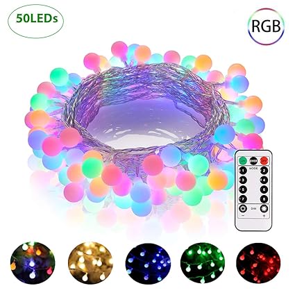 Colored Lights Outdoor Globe String Lights With Remote Control 50 Led Patio Lights Waterproof Battery Powered String Lights For Xmas Tree Party Patio